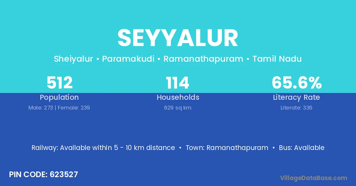 Ramanathapuram is the nearest town to Seyyalur village for major economic activities