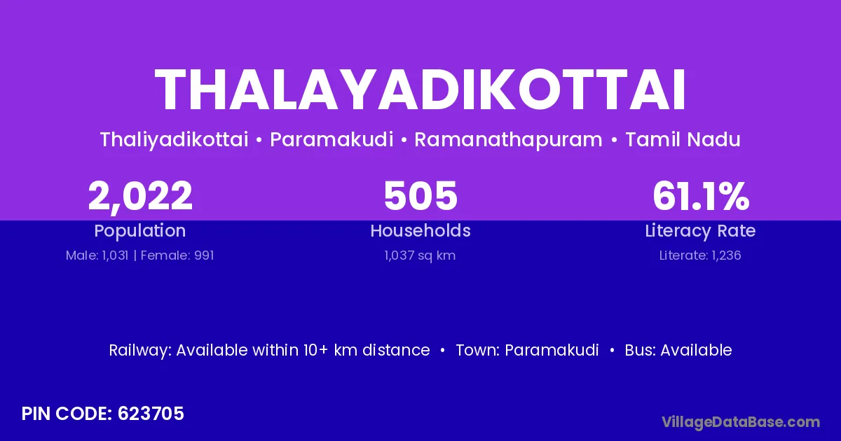 There are approximately 505 households in Thalayadikottai village.