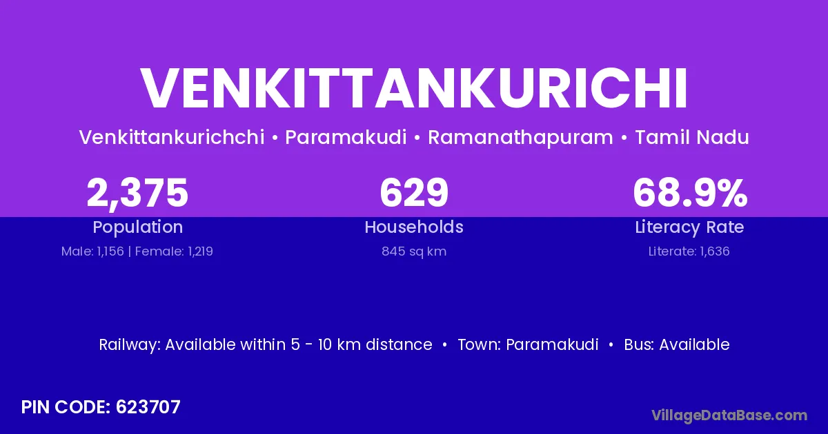 Paramakudi is the nearest town to Venkittankurichi village for major economic activities