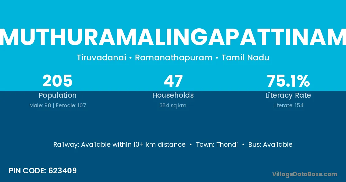 Thondi is the nearest town to Muthuramalingapattinam village for major economic activities