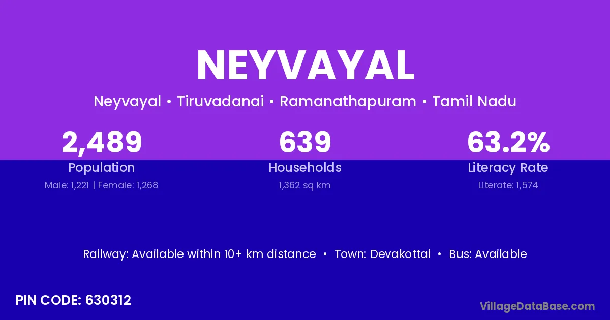 Devakottai is the nearest town to Neyvayal village for major economic activities