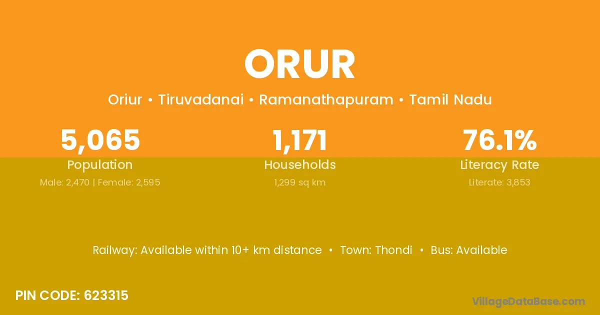 Thondi is the nearest town to Orur village for major economic activities