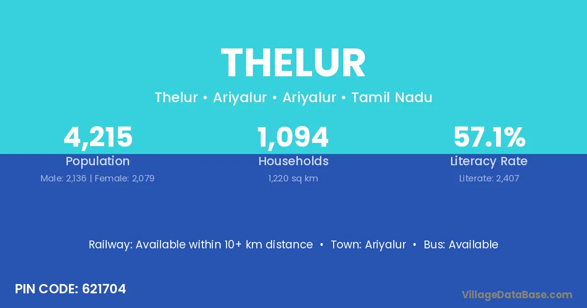 Thondi is the nearest town to Thelur village for major economic activities