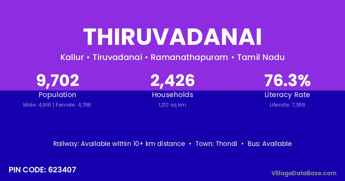 There are approximately 2,426 households in Thiruvadanai village.
