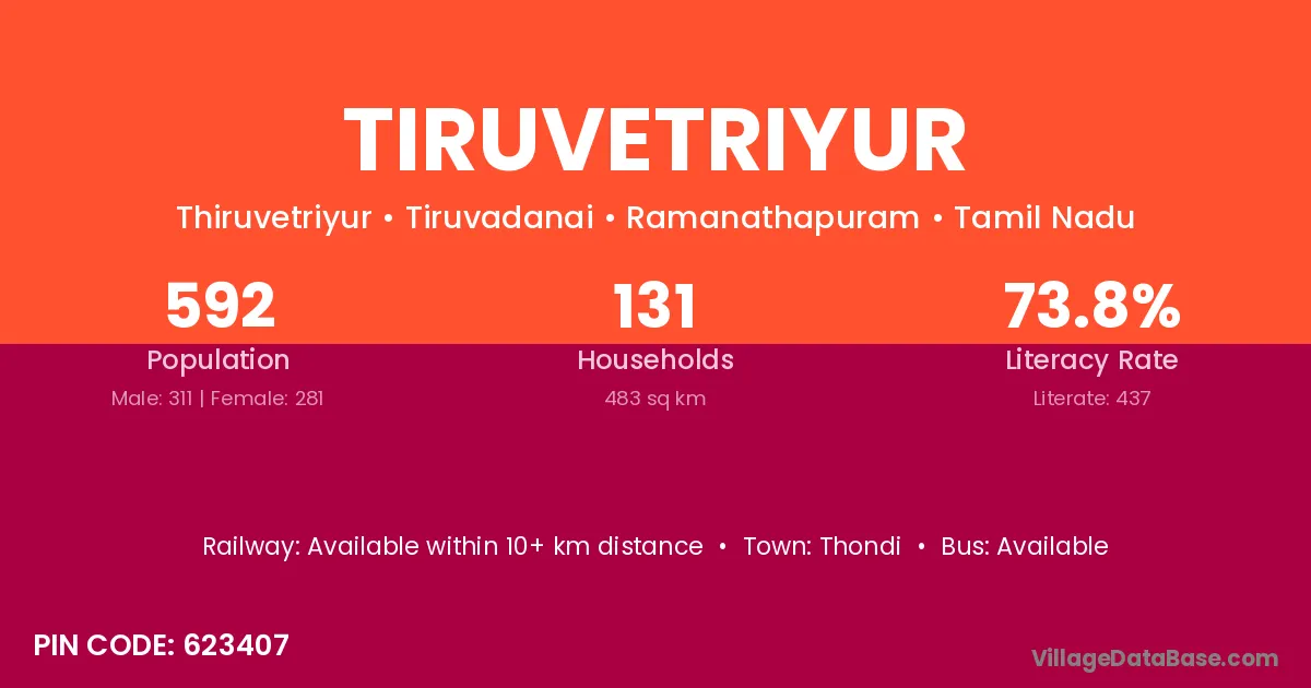 Thondi is the nearest town to Tiruvetriyur village for major economic activities
