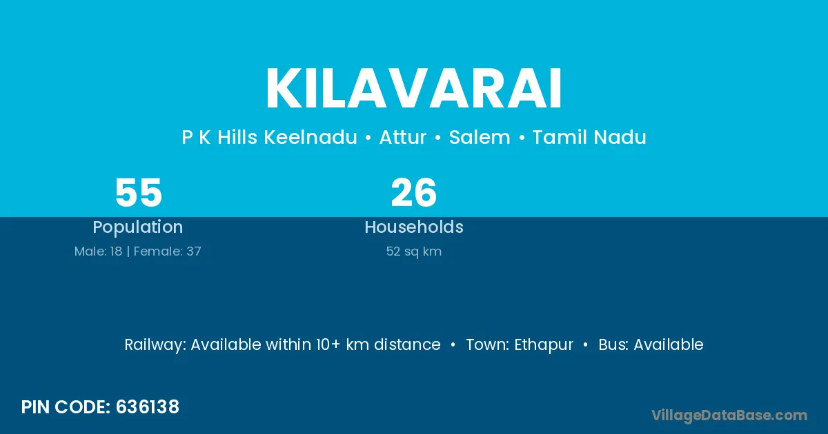 Kilavarai village has a total population of 55 people, of which 18 are males and 37 are females.