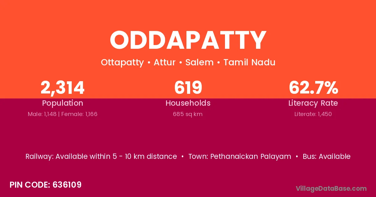 According to Census 2011 information, the village code of Oddapatty village is 636109.