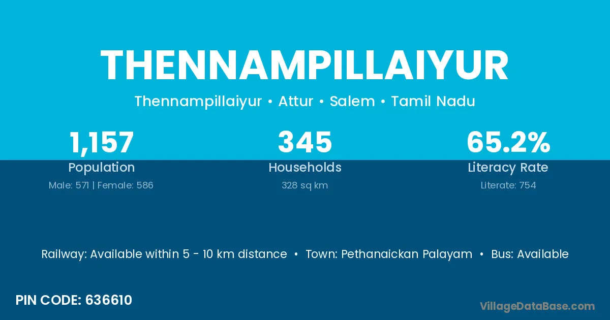 According to Census 2011 information, the village code of Thennampillaiyur village is 636610.