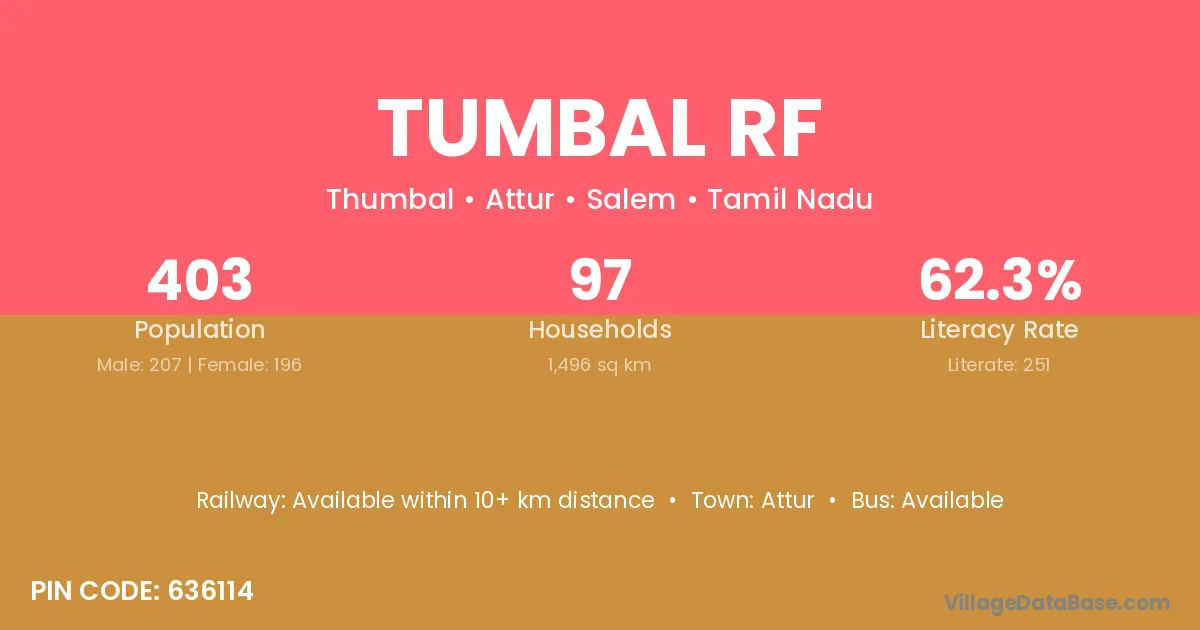 Tumbal Rf village has a total population of 403 people, of which 207 are males and 196 are females.