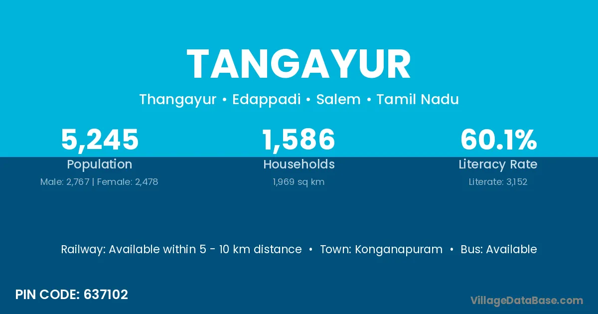 Tangayur village has a total population of 5,245 people, of which 2,767 are males and 2,478 are females.