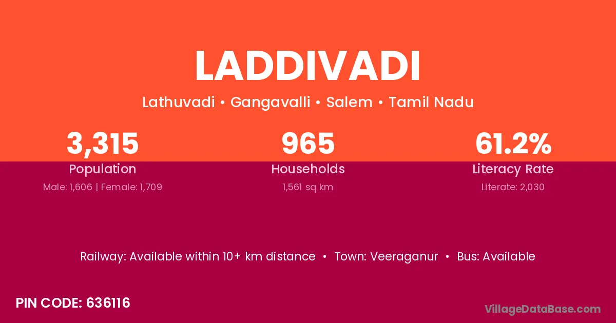 Veeraganur is the nearest town to Laddivadi village for major economic activities