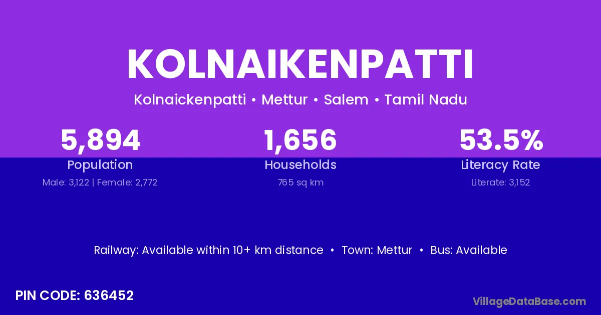 Mettur is the nearest town to Kolnaikenpatti village for major economic activities