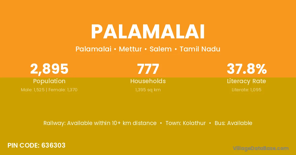Palamalai village has a total population of 2,895 people, of which 1,525 are males and 1,370 are females.