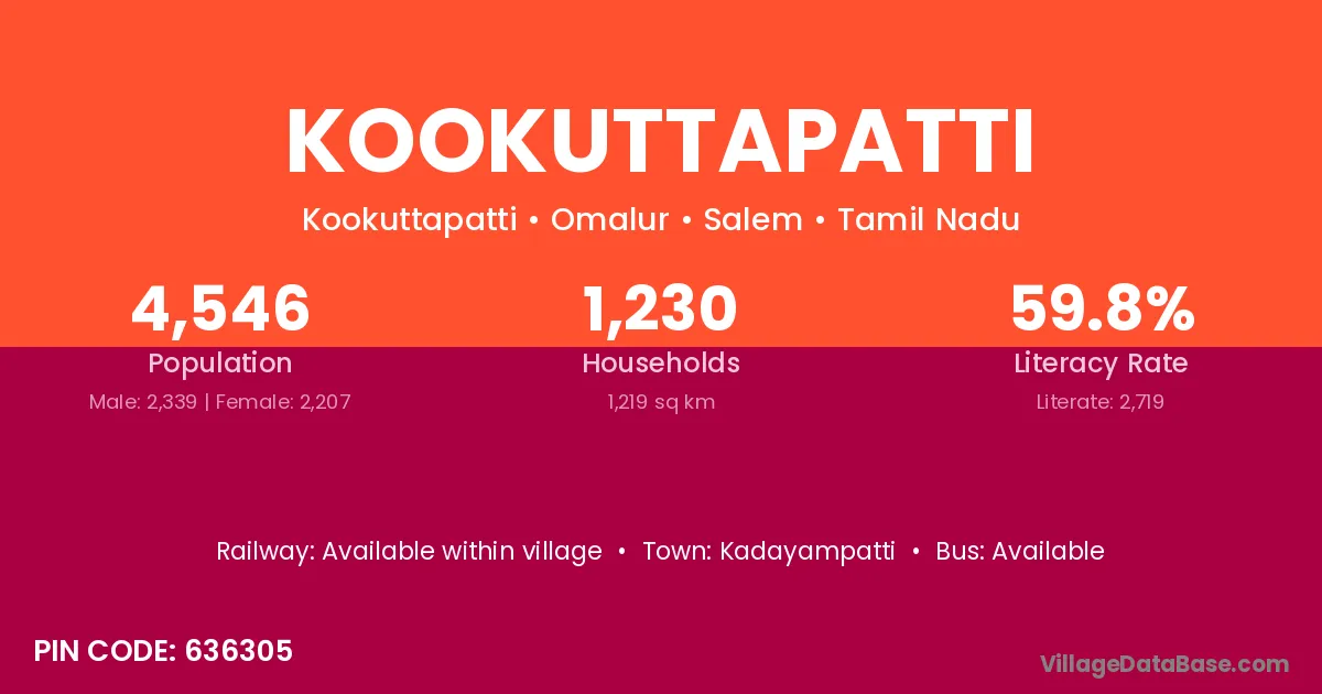 According to Census 2011 information, the village code of Kookuttapatti village is 636305.