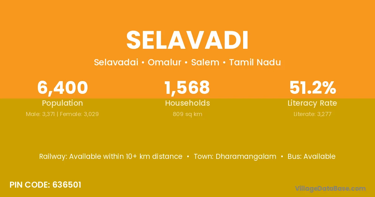 Dharamangalam is the nearest town to Selavadi village for major economic activities