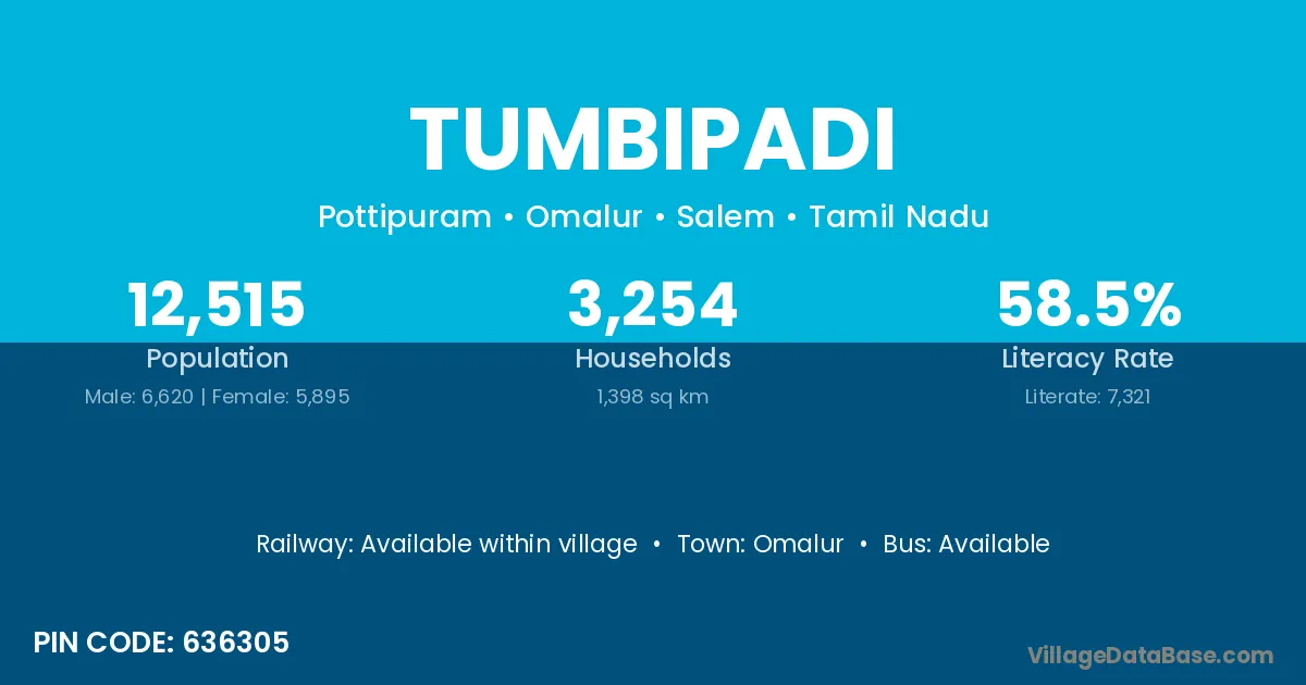 Omalur is the nearest town to Tumbipadi village for major economic activities