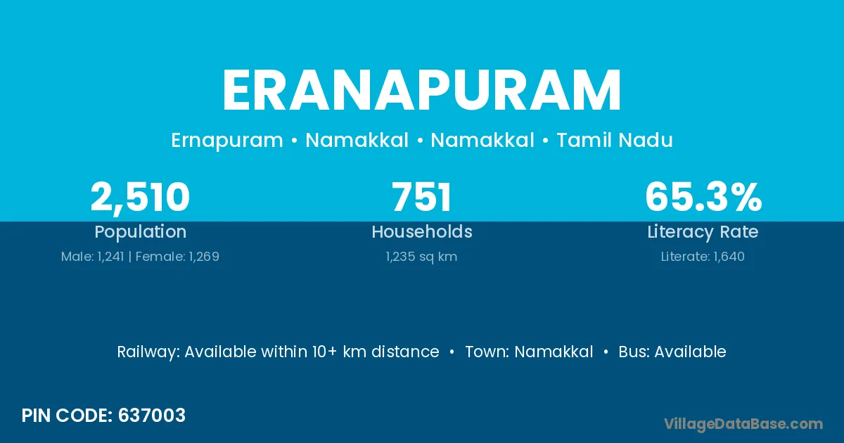Sankari is the nearest town to Eranapuram village for major economic activities