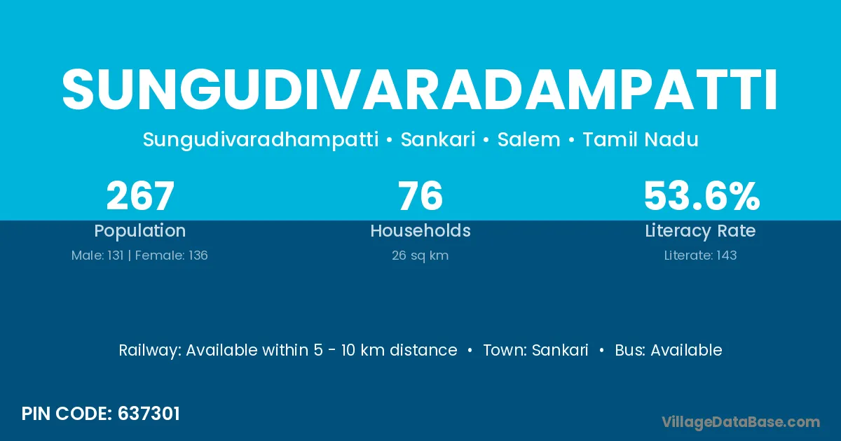 Sungudivaradampatti village has a total population of 267 people, of which 131 are males and 136 are females.
