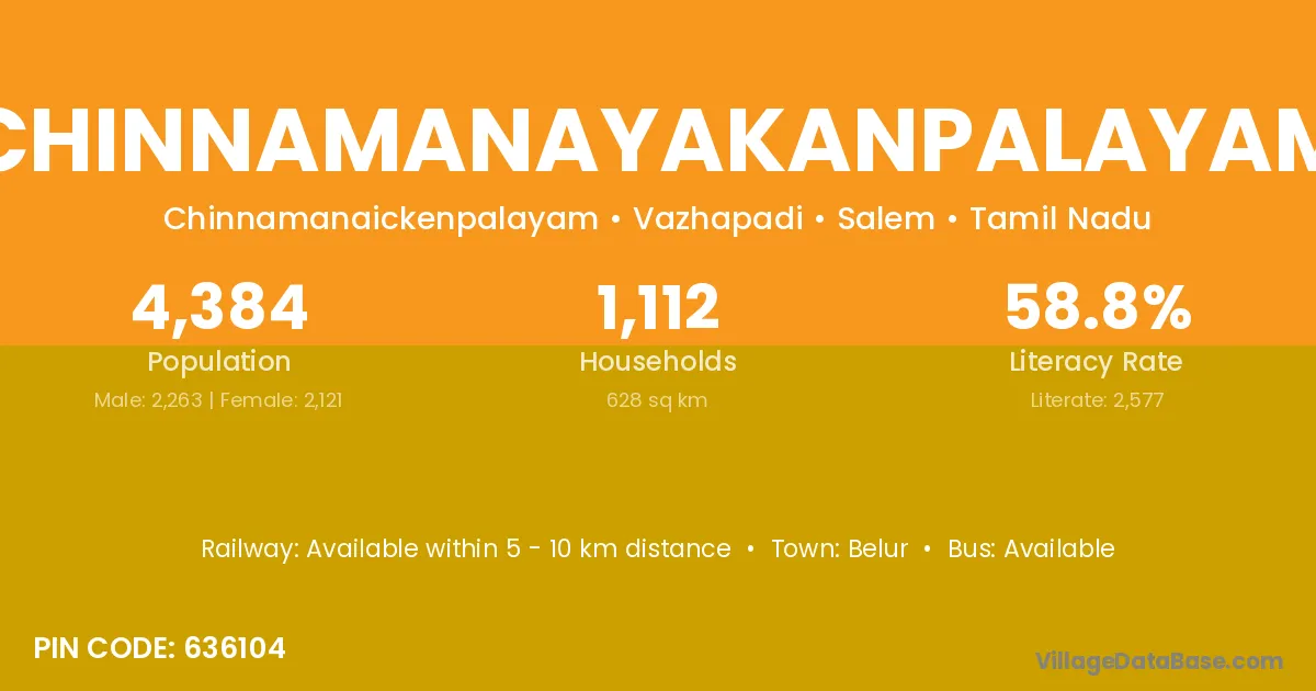 According to Census 2011 information, the village code of Chinnamanayakanpalayam village is 636104.