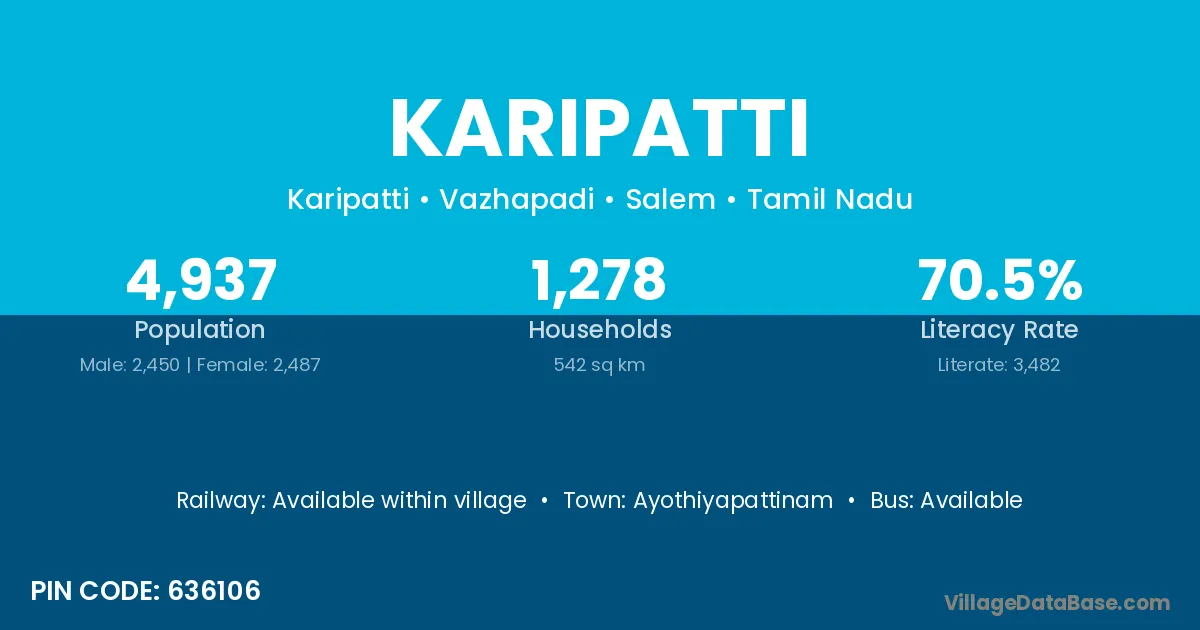 Ayothiyapattinam is the nearest town to Karipatti village for major economic activities
