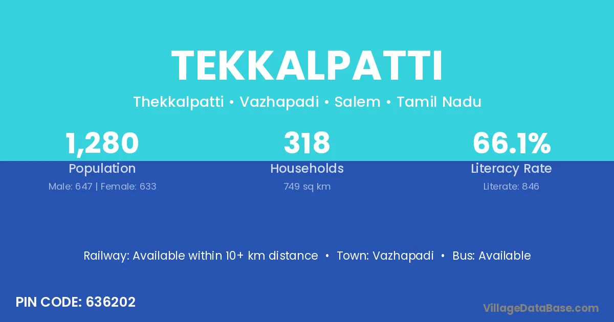 According to Census 2011 information, the village code of Tekkalpatti village is 636202.