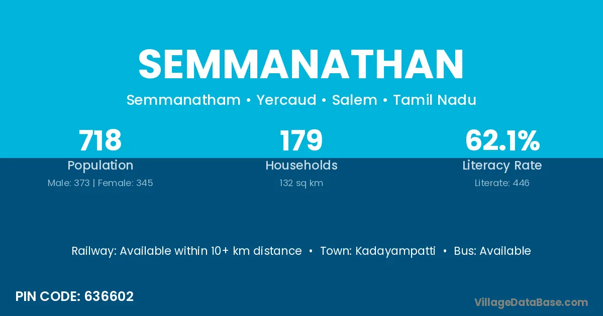 Semmanathan village has a total population of 718 people, of which 373 are males and 345 are females.