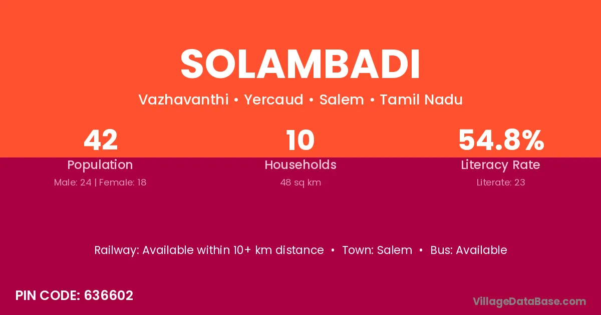 Solambadi village has a total population of 42 people, of which 24 are males and 18 are females.