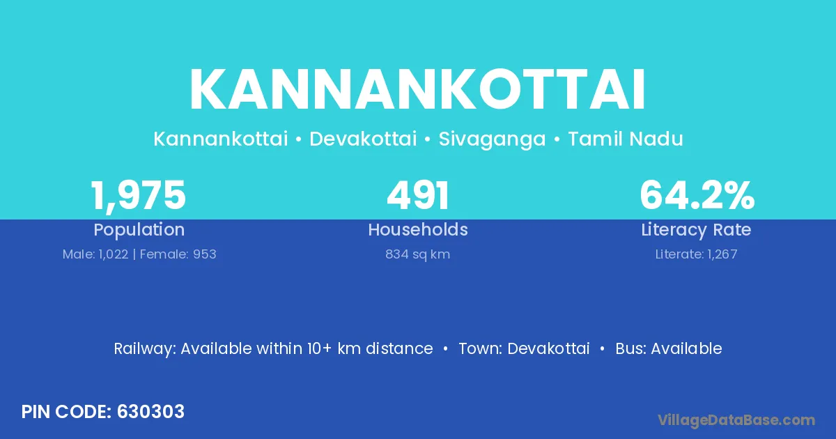 Kannankottai village has a total population of 1,975 people, of which 1,022 are males and 953 are females.