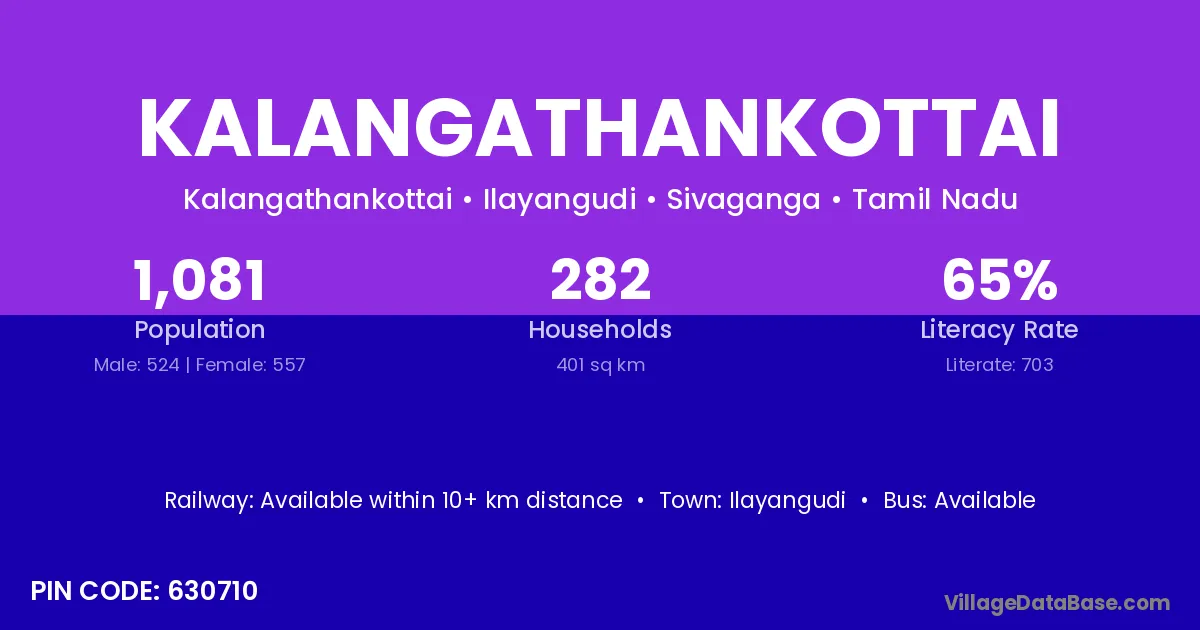 Kalangathankottai village has a total population of 1,081 people, of which 524 are males and 557 are females.