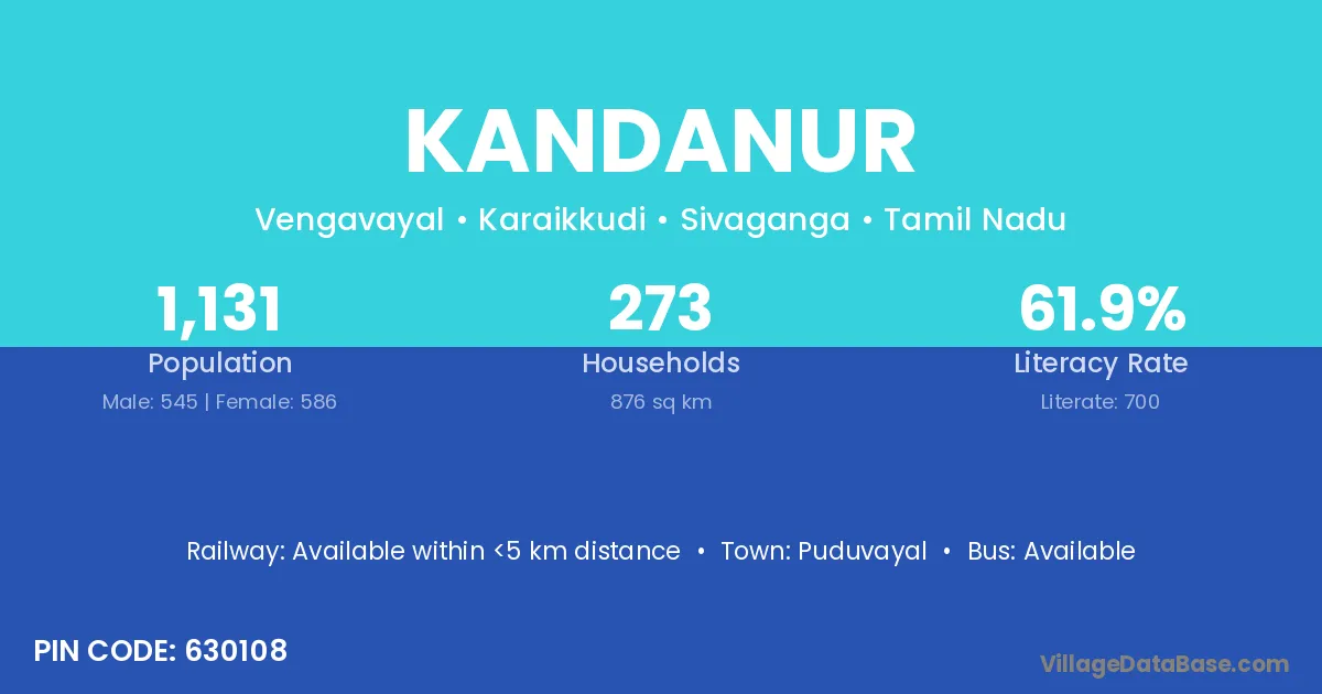 Kandanur village has a total population of 1,131 people, of which 545 are males and 586 are females.