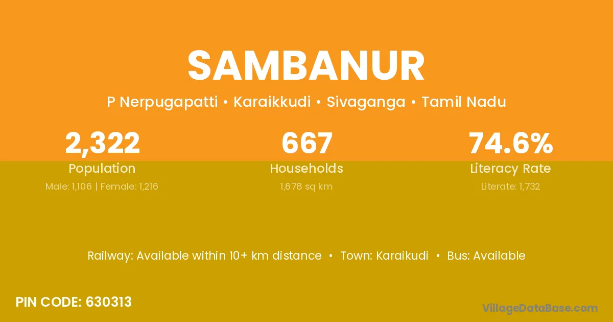 Karaikudi is the nearest town to Sambanur village for major economic activities