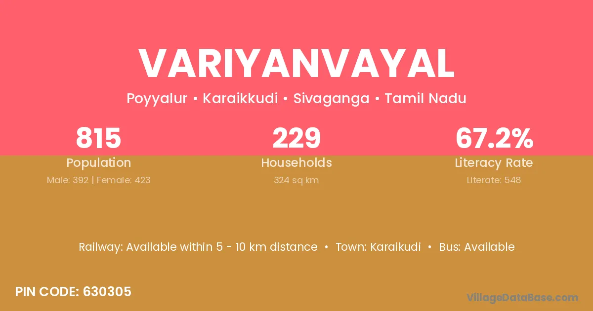 Karaikudi is the nearest town to Variyanvayal village for major economic activities
