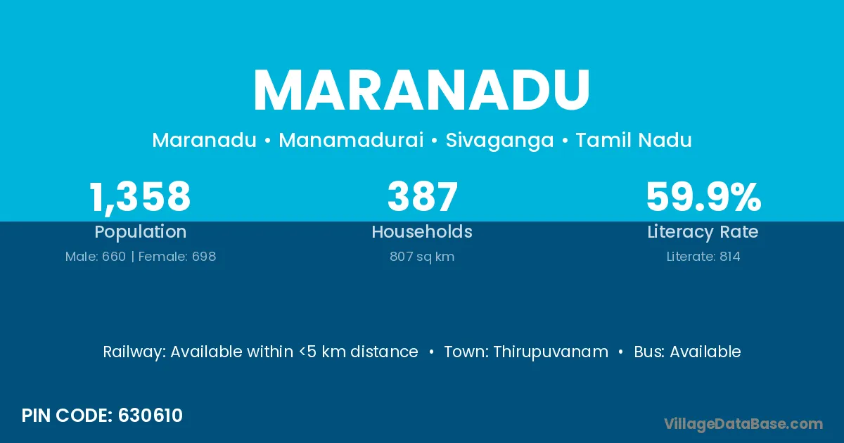 Maranadu village has a total population of 1,358 people, of which 660 are males and 698 are females.