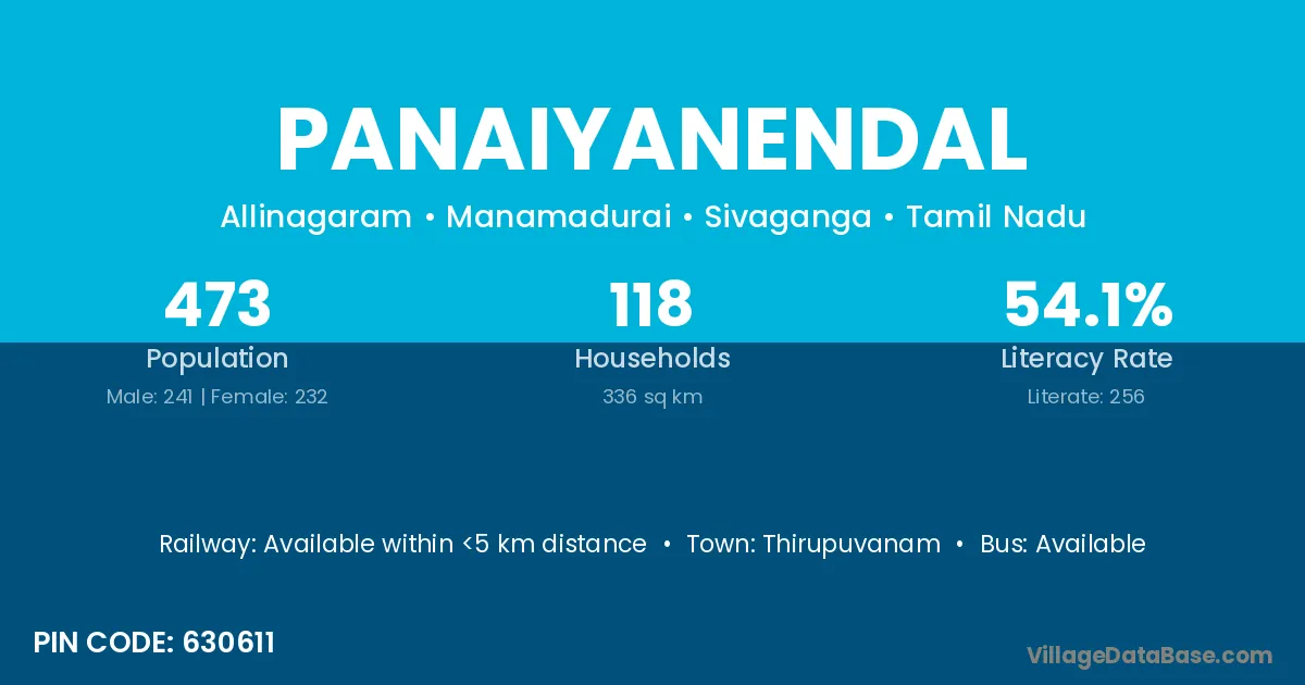 Panaiyanendal village has a total population of 473 people, of which 241 are males and 232 are females.