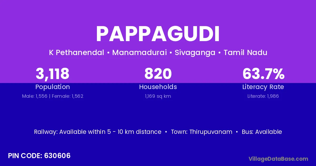 Thirupuvanam is the nearest town to Pappagudi village for major economic activities