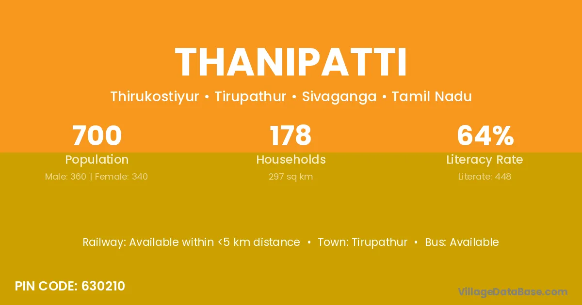 According to Census 2011 information, the village code of Thanipatti village is 630210.