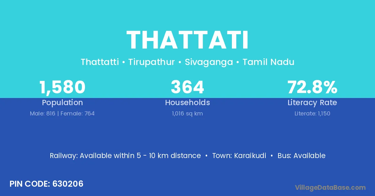 Thattati village has a total population of 1,580 people, of which 816 are males and 764 are females.