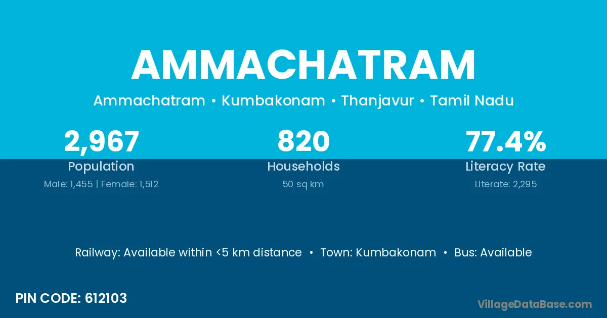 Kumbakonam is the nearest town to Ammachatram village for major economic activities