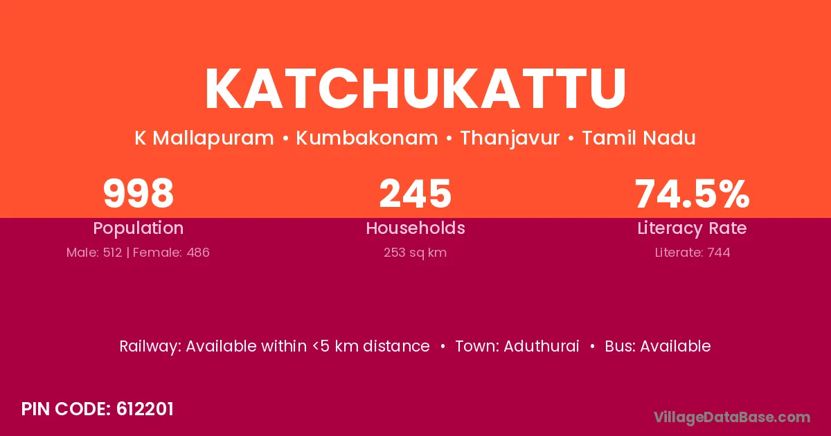 Katchukattu village has a total population of 998 people, of which 512 are males and 486 are females.
