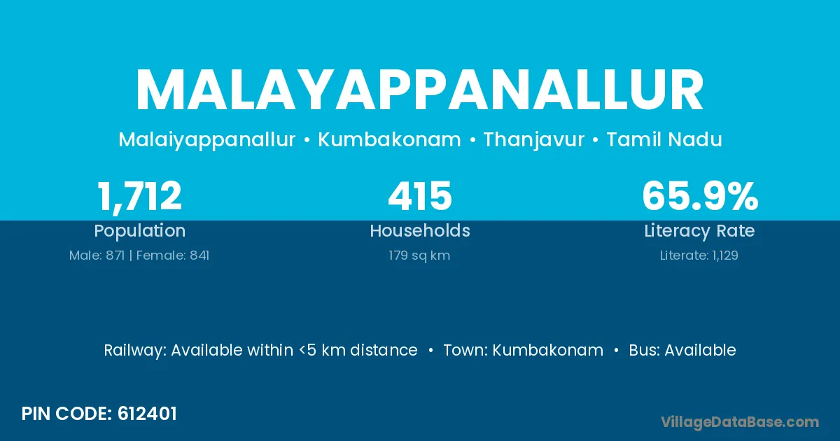 Kumbakonam is the nearest town to Malayappanallur village for major economic activities