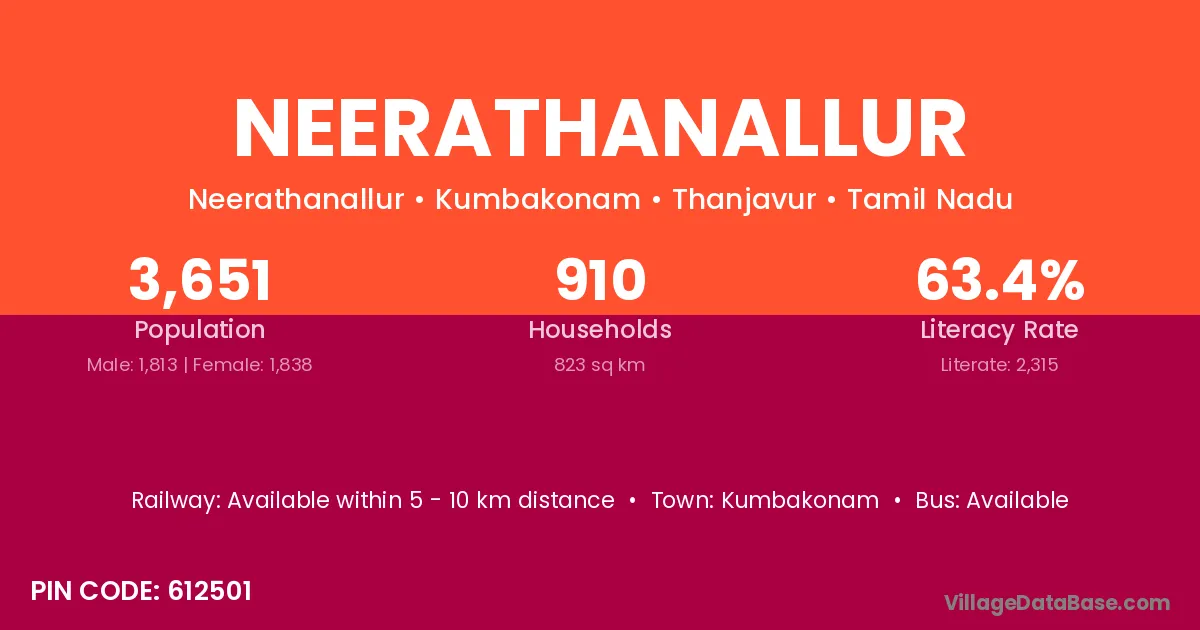 Kumbakonam is the nearest town to Neerathanallur village for major economic activities