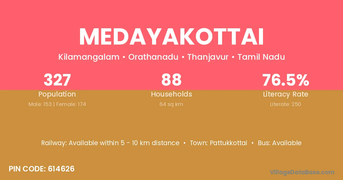 Pattukkottai is the nearest town to Medayakottai village for major economic activities