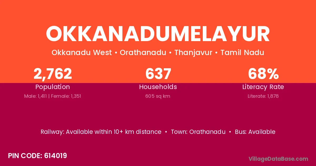 Orathanadu is the nearest town to Okkanadumelayur village for major economic activities