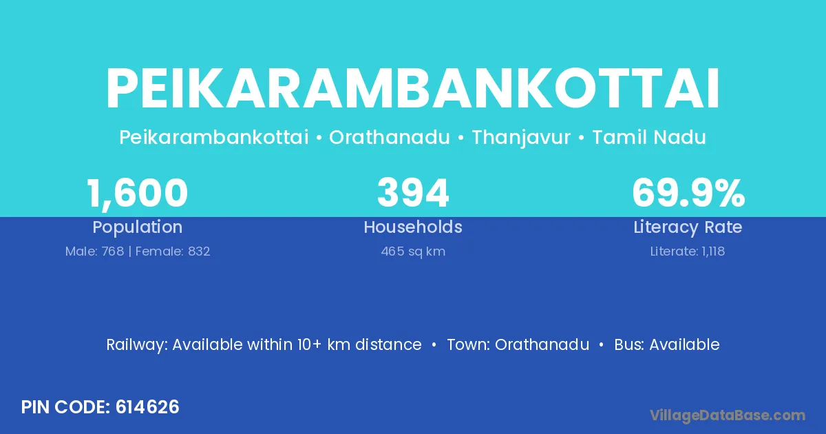 Orathanadu is the nearest town to Peikarambankottai village for major economic activities