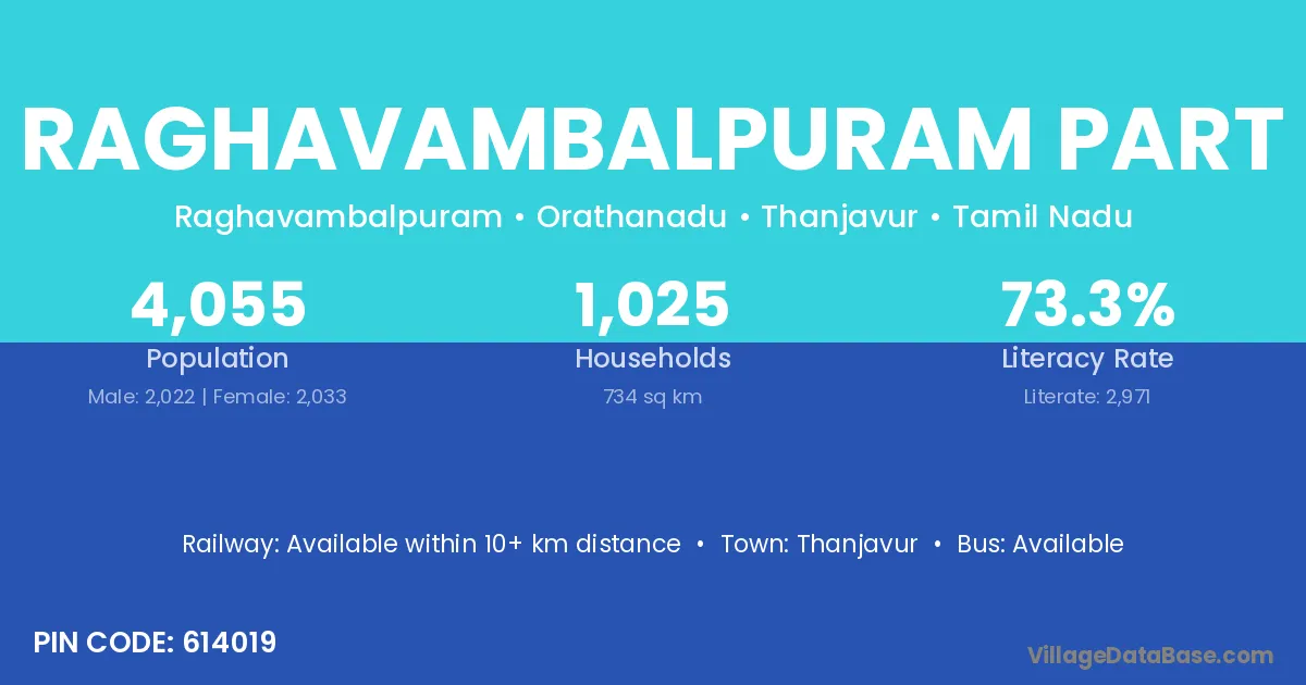 Thanjavur is the nearest town to Raghavambalpuram Part village for major economic activities