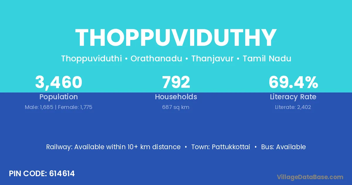 Pattukkottai is the nearest town to Thoppuviduthy village for major economic activities