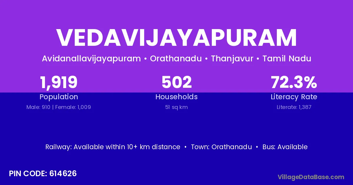 Orathanadu is the nearest town to Vedavijayapuram village for major economic activities