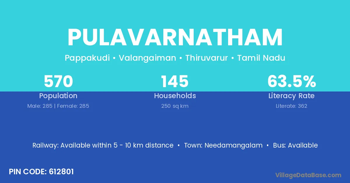 According to Census 2011 information, the village code of Pulavarnatham village is 613502.