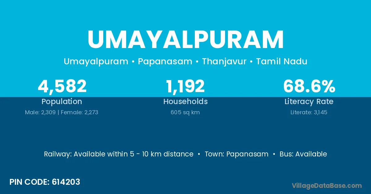 Papanasam is the nearest town to Umayalpuram village for major economic activities