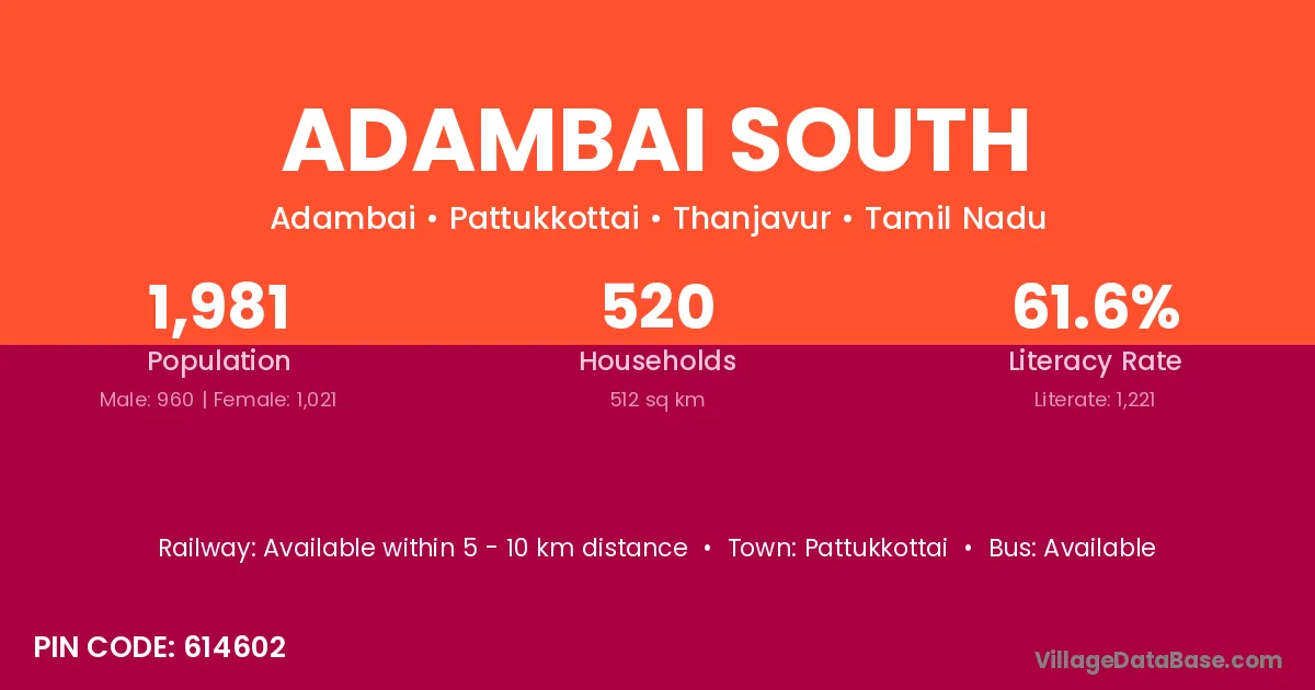 Pattukkottai is the nearest town to Adambai South village for major economic activities